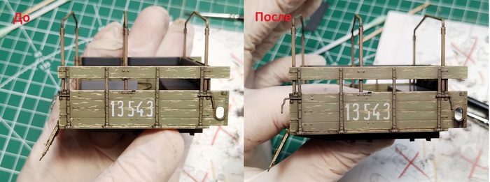 То же самое сделал и с кузовом. Сколы получились на нём довольно утрированными — надо было через чиппинг делать, но уже не стал переделывать.