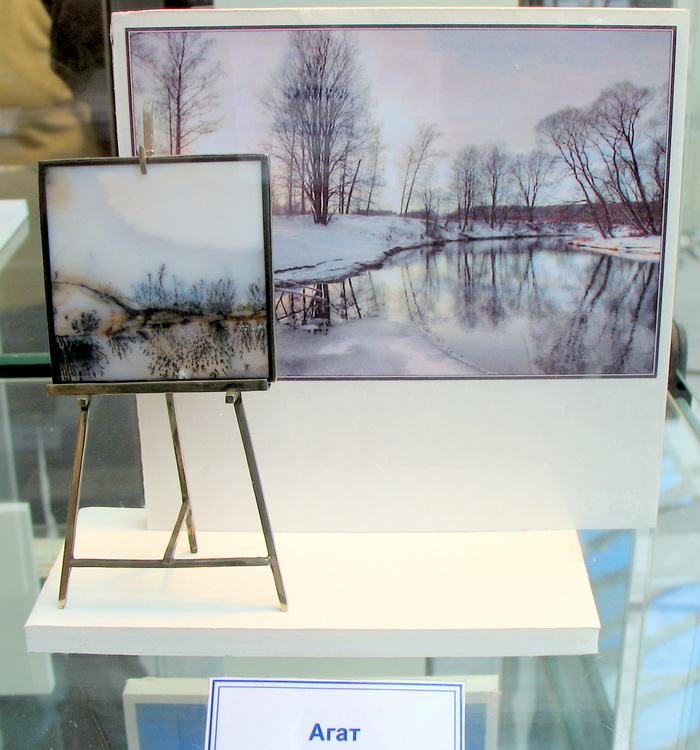 "Моховой агат" (пейзажный халцедон). Месторождение Алатакыр (Шыбынды), Казахстан. Фото автора, выставка "Мир Камня"
