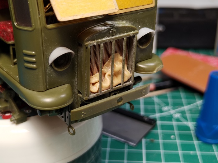 Куда же без утеплителя радиатора. Тоже сваял его из двухкомпонентной шпатлевки, сделал еще швы на нем по типу стёганого ватника, но это по итогу не сильно заметно.