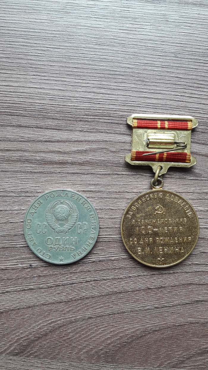 Монета и медаль в честь 100-летия со дня рождения многоуважаемого Владимира Ленина. Смотрят, как будто видят друг друга впервые))