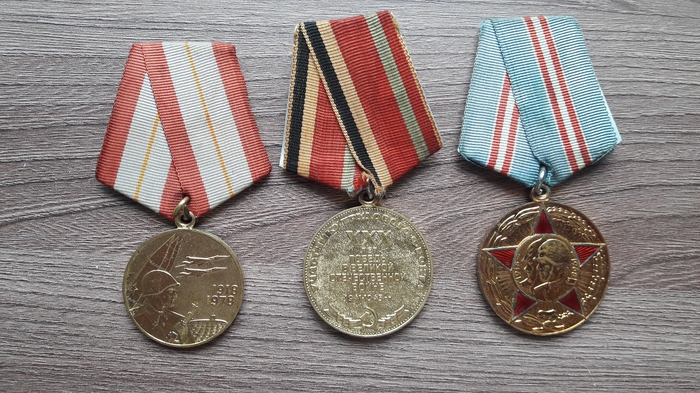 Медали деда. ФСБшная и в честь 300-летия морского флота (вроде в тот же год в Москве и появился угрюмый памятник Петру Первому, который на мой взгляд, лучше бы установили в Петербурге)