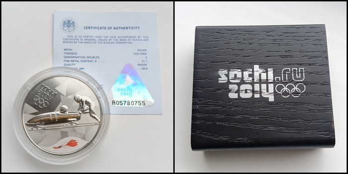 В моем случае 3 рубля - это ряд серебряных монет посвященных Олимпиаде 2014 в красивых деревянных коробочках.