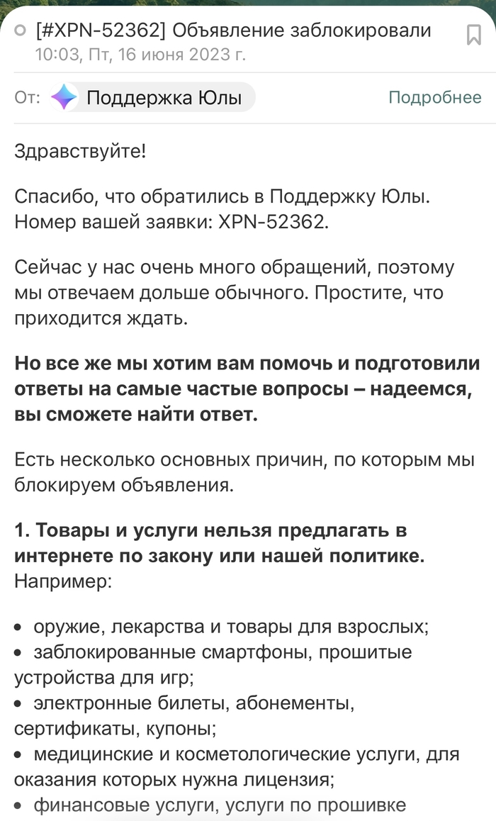 Скажем вот объявление моё недавнее заблокировано.