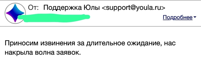 Чтоб вы понимали, то суппорт Юлы себе может позволить и такое (одно из старых обращений)