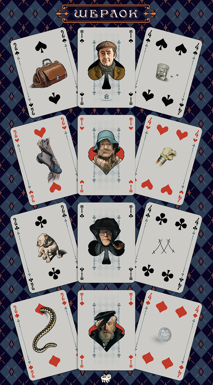 Полностью перерисованные и воссозданные фигуры. Произведено на 3-х слойном картоне с тиснением под лён и покрытие масляным лаком. 2025 год.