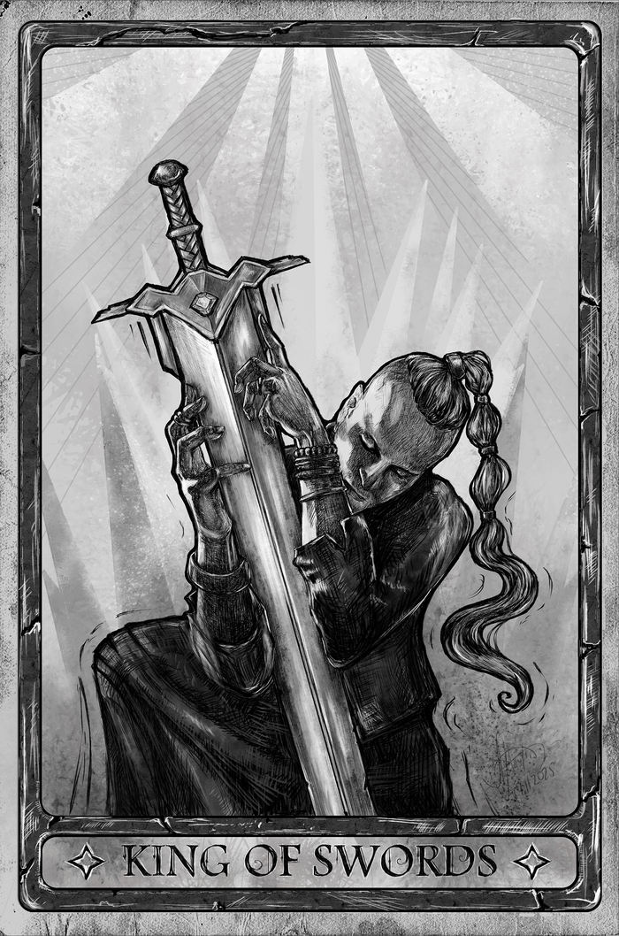 Пришло время действовать. Чтобы сделать первые шаги, есть все – воля, энергия, потенциал. Это – маг, он руководит и созидает. В художественной символике карты я отошла от изображения традиционных предметов на столе, маг объединяет и управляет стихиями мастей – земля, огонь, вода, воздух.