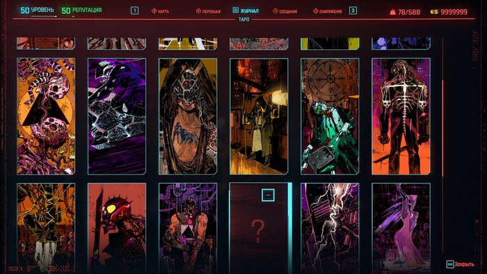 Каждое изображение — это зашифрованный комментарий о судьбе Ви, Джонни Сильверхэнда и самого города. Находя их, игрок не получает игрового преимущества; он получает откровение. Он видит, как его собственное путешествие — от вора-одиночки до легенды — вписано в вечные архетипы Шута, Силы, Колесницы, Смерти и Мира. Это мета-нарратив, который придает личной истории героя масштаб мифа, превращая кибернетический апокалипсис в индивидуальный путь инициации.