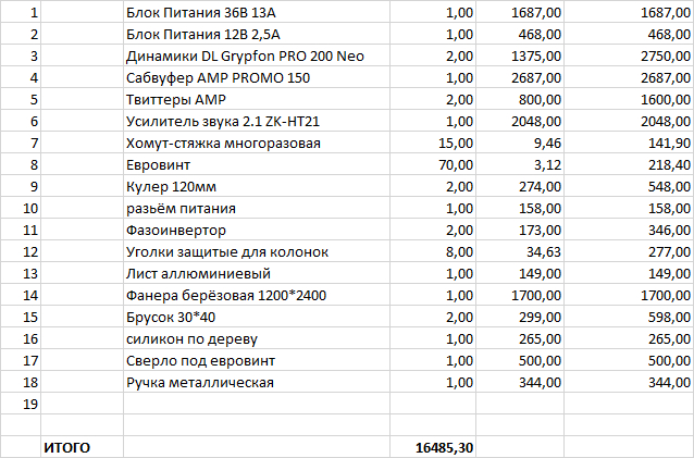 Цены на мощную акустику я посмотрел, и они мне не понравились.