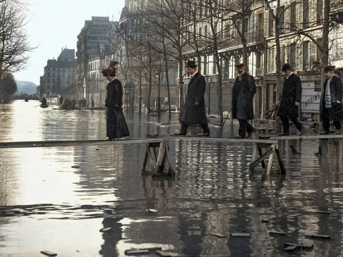 В январе 1910 года Париж пострадал от масштабного наводнения. Из-за сильных паводков на реке Сене и её притоке Марне вода вышла из берегов, затопив значительную часть города. Под водой оказались улицы, площади, железнодорожные вокзалы и станции метро. Жертвами стихии стали десятки человек, а материальный ущерб был огромным.