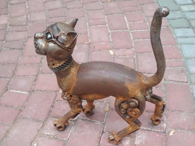 А этот котик "живет" в сквере "Замка монстров", на пеньке. Эта скульптура посвящена питомцу по кличке Сифон. Когда-то волонтеры нашли на улице кота с оторванными лапами и, несмотря не скептические прогнозы ветврачей, пушистик выжил и пошел на поправку.
