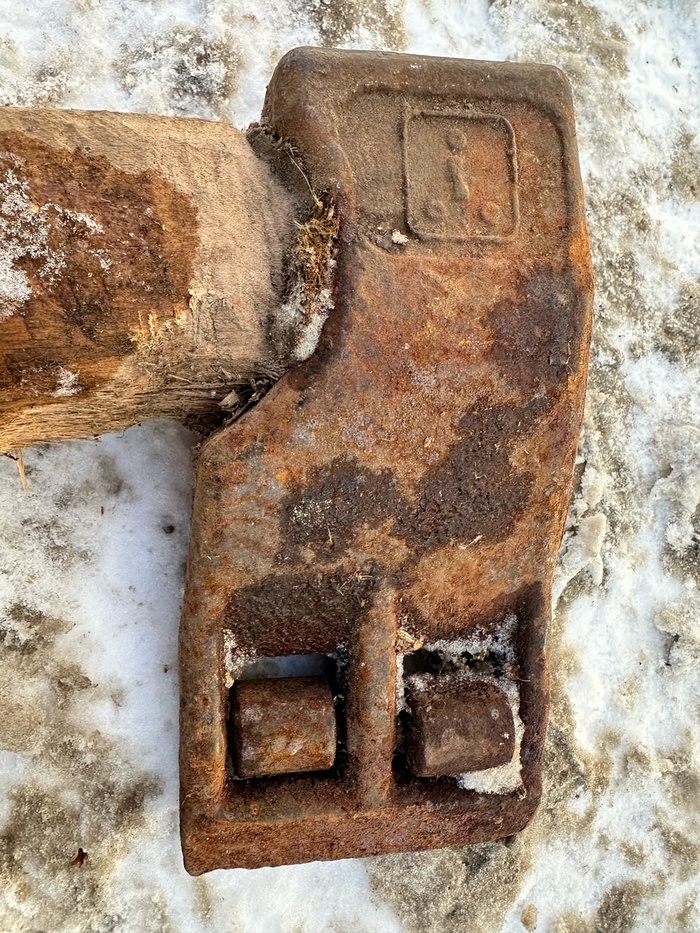Всем привет. Не так давно нашел довольно странный топор-колун в сарае под снос. Необычен он тем, что у него, ближе к лезвию, расположены ролики.