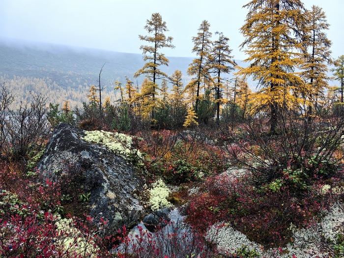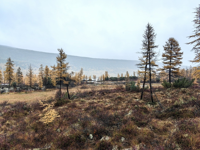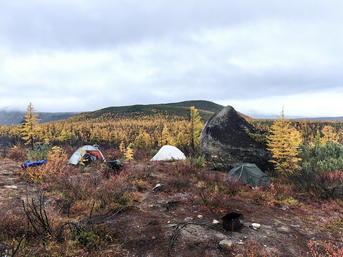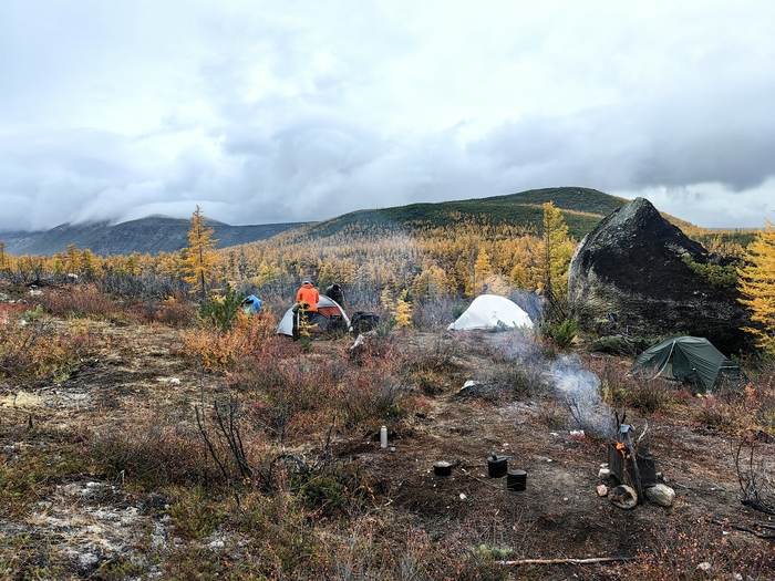 Впереди новый день. Дождь не прекращался. Ясно слышу как внизу яростно прорывает дорогу ручей Неведомый. Шум стал сильнее, значит вода поднялась. Так, не впервой. По плану у нас более нет препятствий в виде ручьев или речек. Только Стоозерка. Но до нее 1-2 дня, пока не решились. Надо вставать. Надо? Конечно надо. Я подтягиваю к себе походные выходные вещи, насквозь мокрые и холодные) Внутренний голос говорит. – Айрат, ты сюда ехал за трешом, вот, наслаждайся. И не поверите, я с энтузиазмом и удовольствием выныриваю из сравнительно теплого спальника в холодный колымский воздух. Атмосферу добавляет ярость ручья Неведомого, где-то там внизу и усиление дождя, капли которого постоянно падали на палатку. Спасибо кстати ей, выдержала. Продолжая, с искренним восхищением – снимаю с себя теплую одежду для сна и начиная тут же дрожать, хм. Погода видать совсем хреновая, делаю селфи, вижу что на шапке иней. Понятно, околонулевая температура. Кайф. Снимаю с себя все, одеваю мокрое, начинаю дрожать еще сильнее. Проверяю фальшфейер, свисток, одевая свои болотники и выхожу на воздух. Видимость в принципе норм.