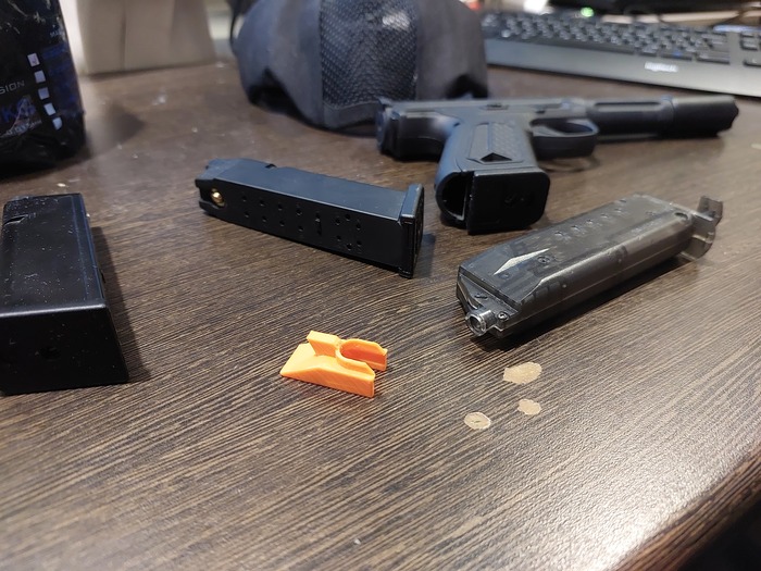 2) Электролоадеры... Работают прекрасно (заряжают почти мгновенно), но, к сожалению, категорически неудобны к использованию с магазинами именно моего типа пистолета (App01), к тому же они большие, очень дорогие и ломаются.