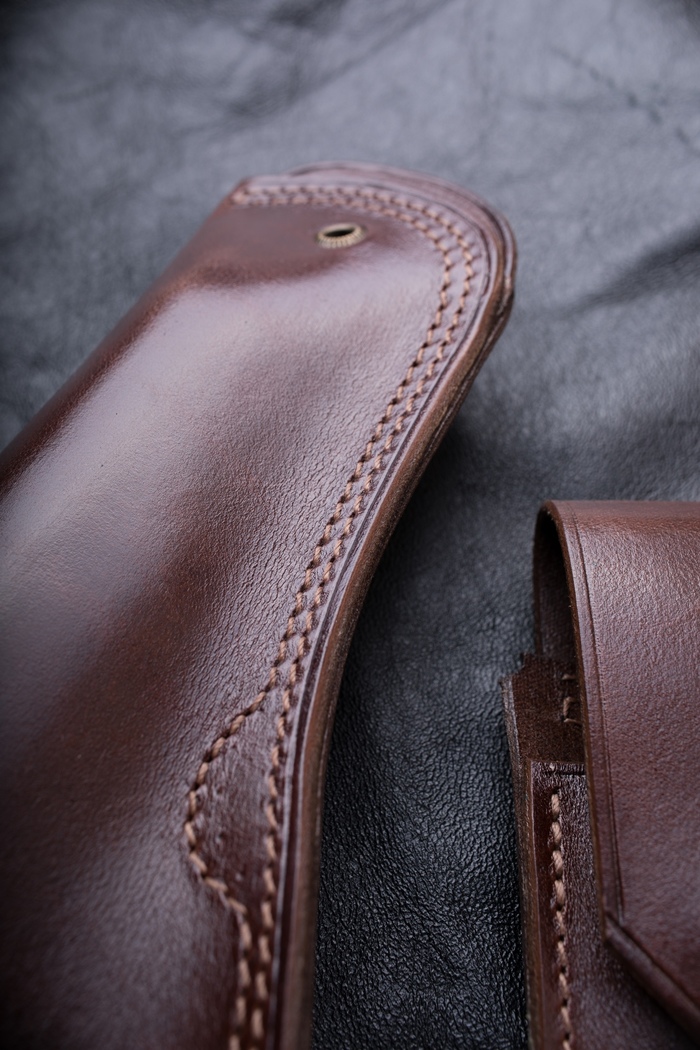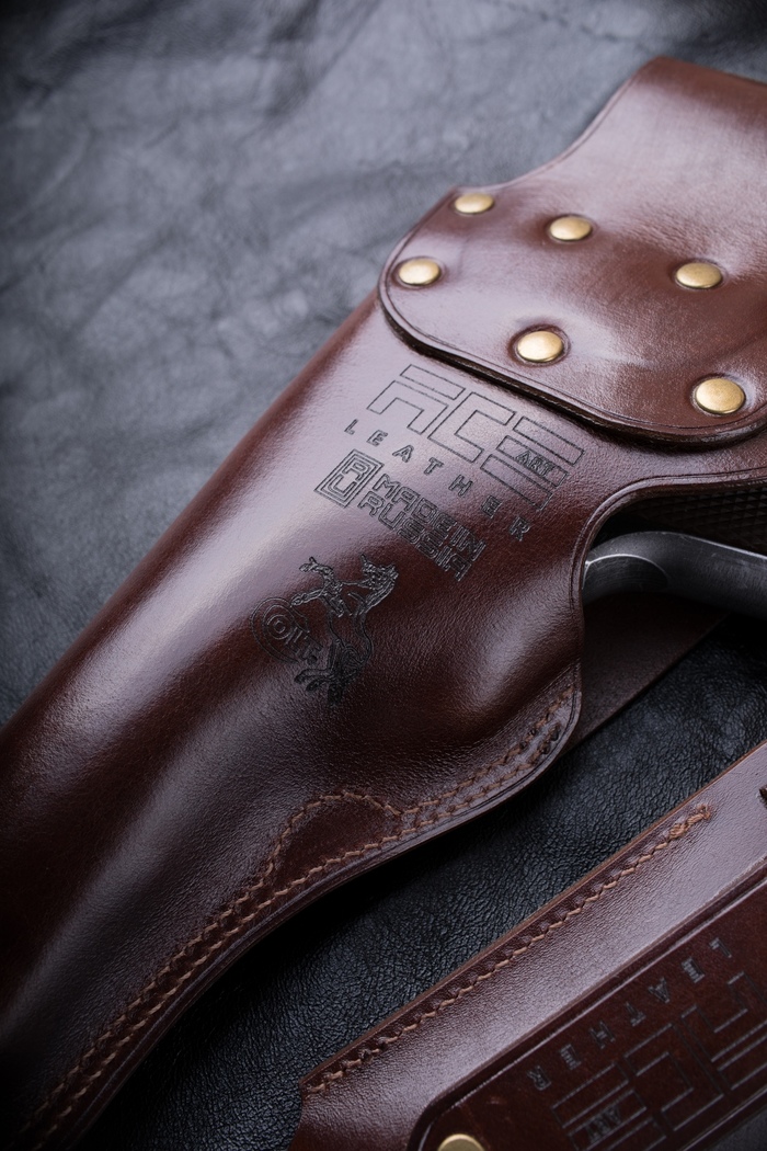 Представленная модель сделана по чертежам оригинальной кобуры 1912 года за исключением некоторых деталей и подвеса.