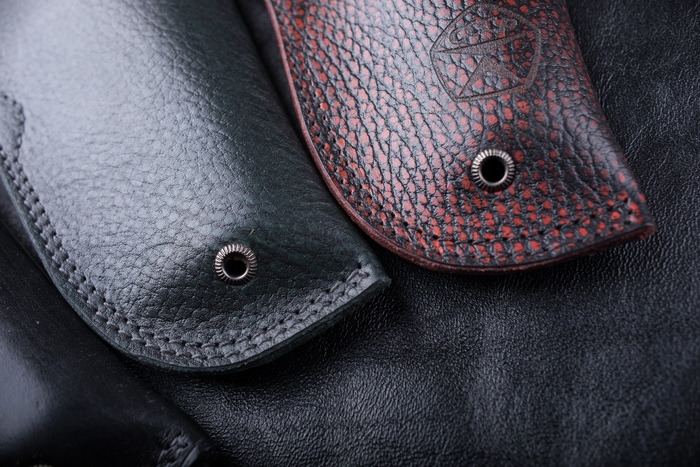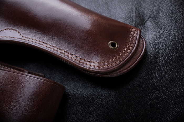 Можно делать в двух вариантах, из двух слоев, лицевая кожа ~2,5 мм и на подклад ~ 1 мм, либо однослойный вариант из ременной кожи 4-5 мм.