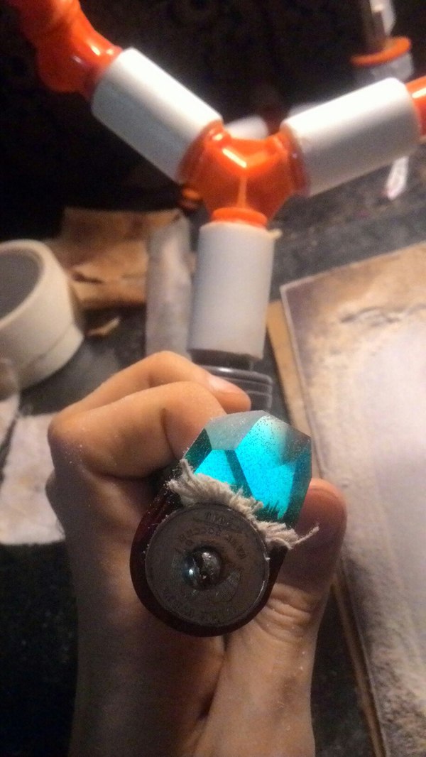 Естественно дальше придаем колечку прозрачности, путем утомительного шорканья каждой стороны на 4 наждачках и полировочной тряпочке. Каааждую грань, пока она не начнет мне нравится. А мне редко что-то нравится)