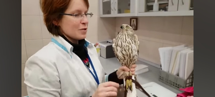 После взвешивания, орнитологи Э. Габбасова и А. Ахияртдинов определили пол птенца. С большой долей вероятности им оказался самец. После промеров и осмотра ветврачом К. Васильевой, на лапы птенца надели алюминиевые кольца с индивидуальным номером D059.