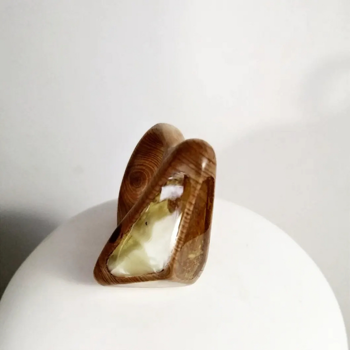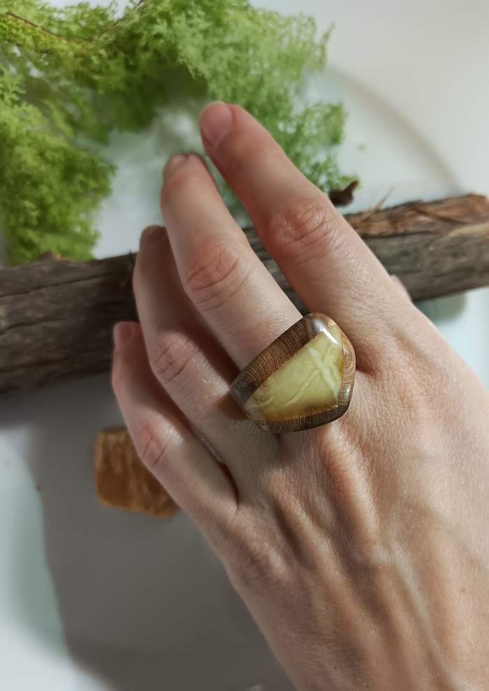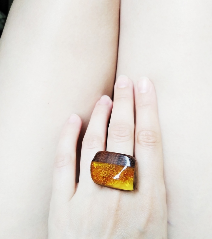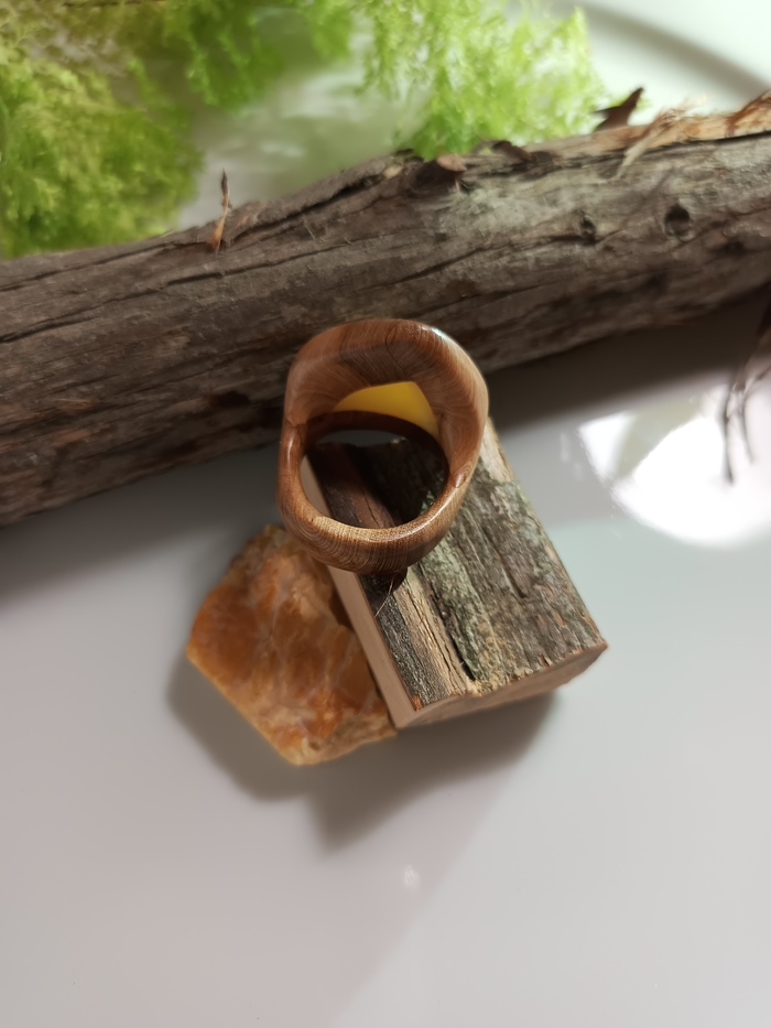 Привет всем читающим! Покопавшись в группе вк я нашел колечко, которое тут не выкладывал. Скальный дуб тут в двух оттенках, и в целом получилось лаконично, такие шоколадные цвета с "начинкой" из янтаря. Такой выдержанный скальный дуб встречается буквально в одном локальном месте Черноморского побережья, в горах, а в других места безжалостно разлагается вместо того, чтобы приобрести с годами такие благородные оттенки. Это зависит от влажности, и "продуваемости" конкретного места, древесина абсолютно уникальная, ищу на отвесных склонах прибрежных скал. Нравятся ли вам мои работы так, как нравятся мне - риторический вопрос, но уверен, хуже лента не становится)