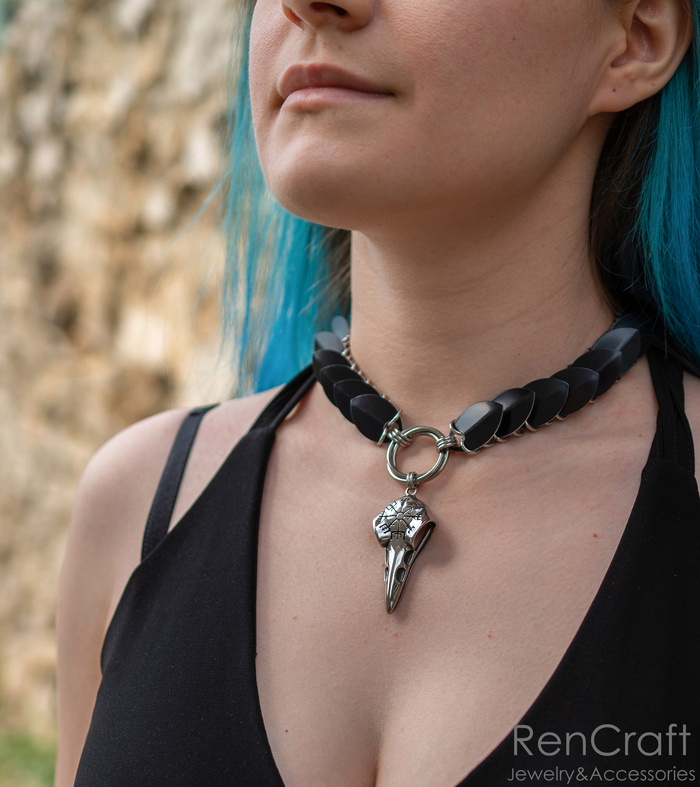 Кроме того, расширила коллекцию чокеров с вороньим черепом новыми цветами: