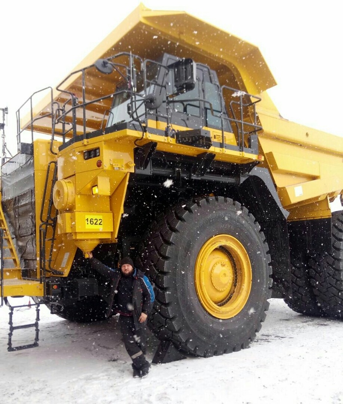 И тогда маленькие тропы превращаются в широченные плато, на которых спокойно разъезжаются исполины высотой с хороший двухэтажный дом, и шириной почти в десять метров, везущие в кузовах по небольшому Эвересту. И с высоты человеческого роста, которая, кстати, вполовину меньше высоты колеса карьерного самосвала, думать о том, что «вот та громадина чуть поменьше вот той» не приходится. И все-таки они различаются. Так, например, японский Komatsu 930E-3SE в импровизированной четверке самых больших автомонстров можно поставить на четвертое место.