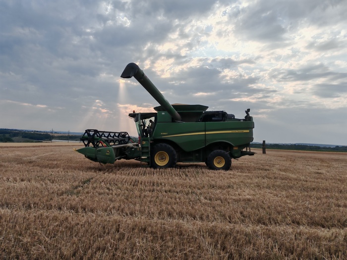 Вечереет, сейчас приедет машина за последним на сегодня бункером и техника поедет на базу