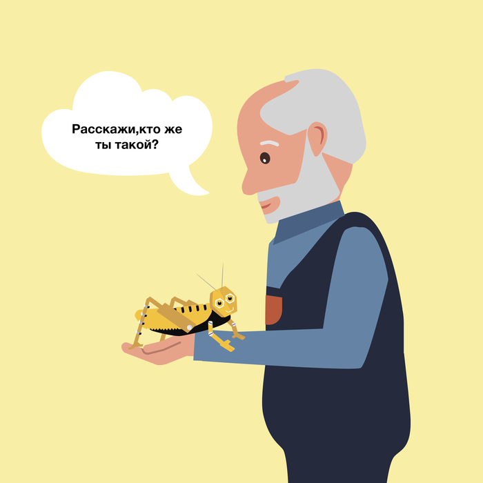 А еще любил Егорыч безделушки мастерить, из всякого лома и ненужных деталей. То трансформера сыну соберет, то Змей Горыныча, а то и тёщу в миниатюре (ну, только ей не показывает). И вот, как-то собрал Егорыч кузнечика. Хороший получился кузнечик: вместо суставов у него шурупы, крылья из нержавейки, на голове – усы проволочные. Полюбовался на него Егорыч и пошел дальше работать.
