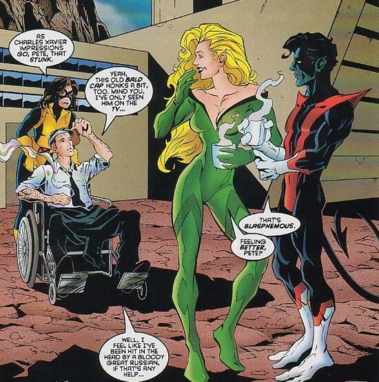 И для этого предназначен комикс Captain America #173. Не успели Люди-Икс с Кэпом и Соколом закорешиться, как Щ.И.Т. появляется – Ник Фьюри, Дум-Дум Дуган, толпа агентов, ну и нормальные полицейские. “Сдавайтесь! Кэп, мы пришли не за тобой, но раз уж ты тут, скрутим и тебя!”. ШТОШ – Капитан Америка, Сокол, Циклоп и Джин Грей переходят в наступление! Профессор Икс, как самый умный, сидит в сторонке и координирует, накрывшись телепатической невидимостью – на данный момент в комиксах он официально даже не раскрыл общественности, что является мутантом, официально он – уважаемый гражданин, человек, правозащитник, отстаивающий права мутантов. В общем, после недолгой стычки герои сбегают – Циклоп создаёт огненную стену, шмальнув лучами из глаз по земле (да, Стиву Энглхарту не объяснили, что лучи Циклопа кинетические, а не тепловые). Спрятавшись в шахте, герои продолжают обсуждение ситуации. Профессор Икс рассказывает, что неизвестные (не Магнето) похитили Ледяного Человека, Зверя, Ангела и пару мутантов, не являющихся участниками команды – Хавока и Полярис. Профессор хотел завербовать Баньши, но тут подвернулся Кэп, Баньши запаниковал, раскричался и свалил.