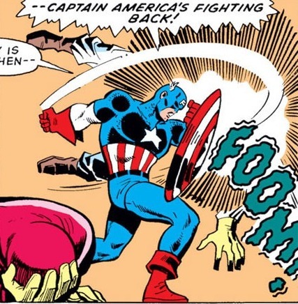 Сегодня звёздно-полосатый движ начнётся с комикса Captain America #171 за март 1974 года, с историей от Майка Фридриха и Стива Энглхарта и рисунком от Сэла Бушемы. Капитан Америка (Стив Роджерс) раздумывает – идти ли с теми, кто собрался его из тюрьмы вызволять. Пойдёт – нарушит закон и подтвердит подозрения в свой адрес. Не пойдёт – не выведет Лунного Камня (преступника, прикидывающегося героем) на чистую воду. Всё же Кэп решает, что сбегать из тюрьмы неправильно и не даёт своим “выручателям” поубивать охранников (помогает то, что у Капитана всё ещё есть суперсила). Всё же, как доказано Халком, против газа суперсила бесполезна. Кэпа вырубают и уносят. Просыпается Кэп в переулке, при щите, подслушивая, как “спасители” шушукаются – “Во лох звёздно-полосатый, не догадывается, что мы его враги, мы его ещё сильнее дискредитируем, ха-ха!”. Вскочив, Кэп гадам накидывает и собирается найти Лунного Камня. А в жаркой Ваканде Сокол (Сэм Уилсон) с новыми крутыми крыльями и Чёрная Пантера (Т´Чалла) идут спасать похищенную Лейлу от бандита Камнеликого.