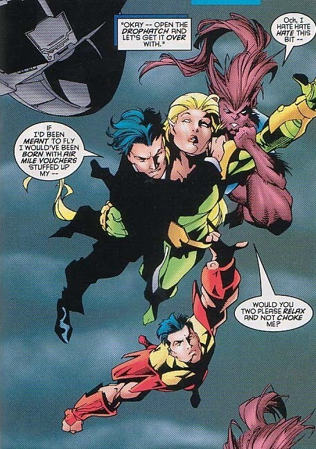 Спасение идёт немного не по плану – Сокол слишком расхваливал крылья, на уроки полётов практически не хватило времени, так что он преимущественно мешается у Пантеры под ногами. Воспользовавшись замешательством, бандиты Камнеликого скручивают героев и сбрасывают их со скалы. Шикарный план – сбросить с высокого утёса двух людей, один из которых сверхчеловечески ловок, а второй умеет летать. Разумеется, герои спасаются, возвращаются на утёс и накидывают бандитам по самое не балуй мне. Лейла довольна: теперь у Сокола есть крылья, теперь он больше не белая подстилка, а может даже с Капитаном Америкой посоперничать, ведь человечек со щитом пусть и стал сильнее, а летать не научился. Так что Сокол с обновкой возвращается в США, и там его встречает Железный Человек. “Буду краток. Ты хорошо знаком с Кэпом. Нужно выяснить, действительно ли Кэп убил человека, или его подставили”. Сокол и сам рад бы это выяснить. Он находит Капитана Америку и вдвоём герои собираются вывести Лунного Камня и его “менеджера”, Хардермана, на чистую воду...но объявляется сам Лунный Камень, застаёт героев врасплох и нокаутирует их, и злорадствует – теперь он дискредитирует не только Кэпа, но и Сокола!
