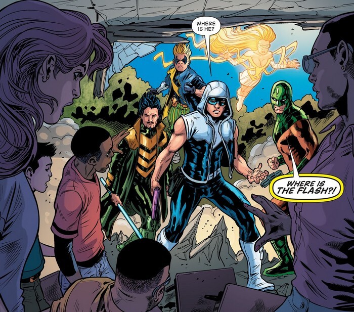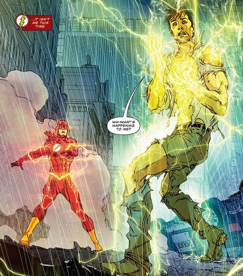 А Негодяи – на обложке комикса The Flash #48, с рисунком от Хесуса Мерино. Дэррил Фрай приветствует Барри Аллена в новом временном убежище полицейского управления (старое-то здание лежит в руинах) и знакомит его с временными, кхм, гражданскими помощниками полиции. Короче говоря – Негодяями. В наличии Капитан Холод (Леонард Снарт), Золотой Глайдер (Лиза Снарт), Погодный Волшебник (Марко Мардон), Трикстер (Аксель Уокер) и Зеркальный Мастер (Сэм Скаддер). Мэр заручился их помощью и выдал их на помощь полиции для поимки опасного преступника, Флэша. «Ау, Дэррил! Полиция работает с преступниками для поимки героя, ну не бред ли? – Может, и бред, а вот насчёт того, что Флэш герой, это бабка надвое сказала. – Он столько раз спасал город! – Было дело...но немало раз город страдал из-за того, что Флэш не мог контролировать свои силы». Во дела...