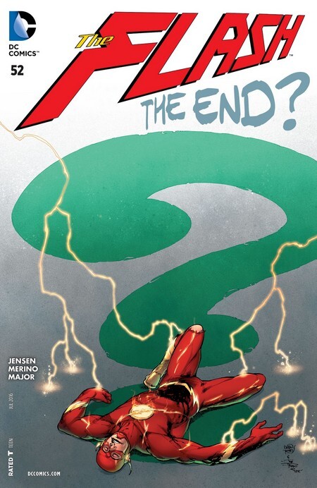 Загадочно заканчивается четвёртый том комикса (но не этот пост) комиксом The Flash #52 за июль 2016 года, от Вана Дженсена и Хесуса Мерино. Загадочник намерен убить Флэша по старинке – с помощью гильотины. Капитан Дэррил Фрай в шоке – он узнал, что его приёмный сын – Флэш, что он, по сути, охотился на того, кого растил, как собственного ребёнка...и теперь Барри погибнет. Казнь Флэша будет транслироваться по всем каналам. Загадочник не раскрывает заранее, что Флэш – это Барри Аллен, но Уолли Уэст всё равно намерен хоть как-нибудь Флэшу помочь. Но он вынужден сидеть дома, тогда как Айрис Уэст отправляется на «разведку». Она же всё-таки журналистка. Но Уолли не намерен сидеть спокойно. Он на суперскорости ломает один из беспилотников. Загадочник видит «скоростную аномалию» на своих датчиках и приходит к выводу, что Барри Аллен – не Флэш, а самозванец. Нужно найти настоящего Флэша – но пока Загадочник этим занимается, капитан Фрай освобождает Барри из гильотины. И Флэш отправляется заручаться помощью Негодяев! Не дав Негодяям убить Трикстера, Флэш объясняет – Тепловая Волна жив, и Загадочник намерен использовать его в качестве бомбы, которая может испепелить весь город. Значит, нужно обезвредить беспилотники и Загадочника и спасти Волну. Перепрограммировав техноруку Трикстера, Флэш выводит Лизу Снарт из комы, чтобы доказать, что правду говорит.
