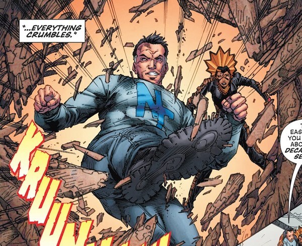 А Тоун сейчас гораздо опаснее – он не только офигенно быстрый, он ещё и может состаривать предметы прикосновением и отбирать способности с помощью особой перчатки! И поскольку его скорость завязана на управлении самим временем, то неважно, насколько быстро бегает Барри – Профессор Зум быстрее. Он уже собирается убить Флэша и откачать его способности – но тут на поле боя появляются Генри Аллен и Магали, и Магали объясняет остальным приспешникам Зума, что тот ими пользуется и лжёт им. Приспешники оборачиваются против Зума, забирают Магали и исчезают с помощью пространственных способностей Складочника (Folded Man), предварительно сломав перчатку для откачки способностей. Зум зовёт их предателями (ага, отнять их силы и убить их планировал Зум, но предатели они), хватает Генри и убегает к дому Алленов, где в прошлом была убита Нора Аллен. Флэш его догоняет – и Тоун раскрывает Генри Аллену, что Флэшем является Барри!