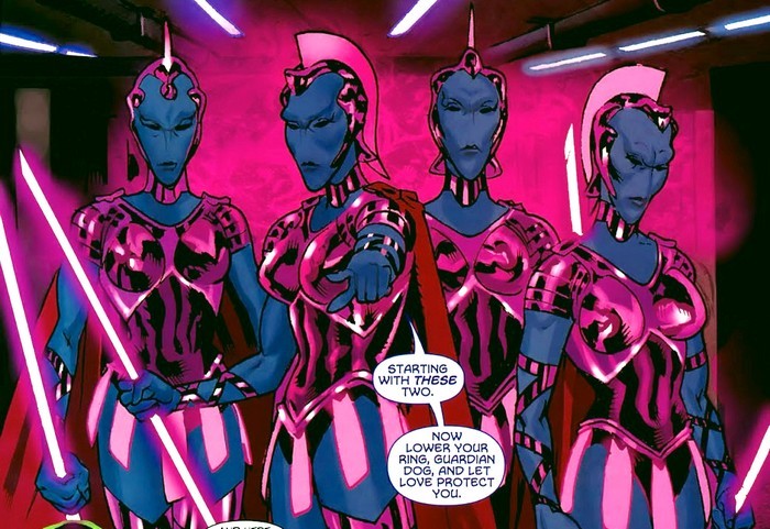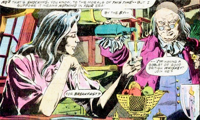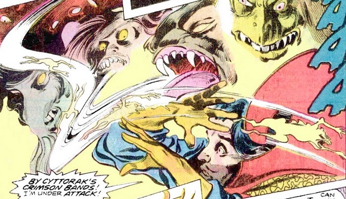 А теперь – комикс Uncanny X-Men #448, где за рисунок отвечает Оливье Куапель. Из побывки в параллельном мире возвращаются Брайан Брэддок и его девушка, Мегган, как раз в восстановленное поместье (магия быстро его восстановила), и радушно общаются с Людьми-Икс. «Друзья, ну магия магией, а почему поместье в принципе было разрушено? – Ну, мы тут с одной эпической бандурой сражались. – С Яростью, что ли? Ну молодцы, что ушатали эту тварь. Она путешествовала по Мультивселенной и убивала Капитанов Британии из разных измерений. Меня тоже убила – но меня воскресили». В общем, все мило общаются, только Рэйчел Грей некомфортно – на мгновение она видит вместо отремонтированного поместья всё ту же груду руин, а на них – Джейми, злого и безумного брата Брайана, способного искажать реальность. Но в мире, где существует телепатия, сверхреалистичные иллюзии, искажение реальности и вполне официально магия, боги и демоны, Рэйчел уверена, что ей просто показалось. Ну, не до этого сейчас. Людей-Икс приглашает на банкет в Букингемский дворец королева Великобритании (в знак благодарности за то, что в другом комиксе Росомаха, Китти Прайд и Рэйчел спасли её от Гидры).