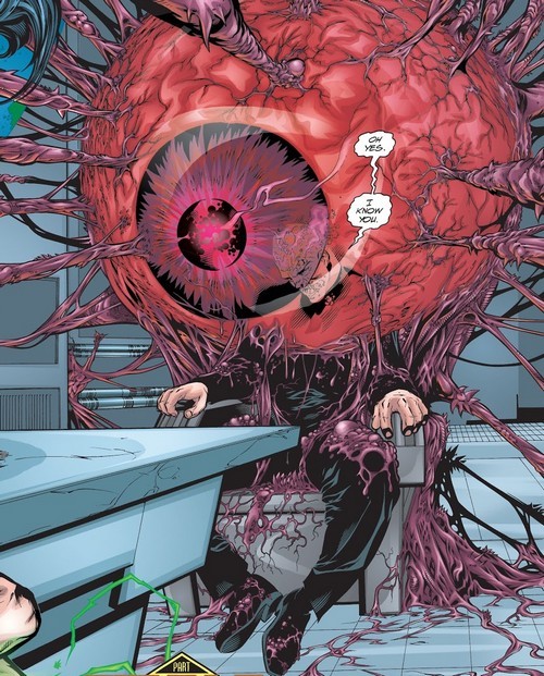 Сегодня пост начнётся с комикса Uncanny X-Men #446 за сентябрь 2004 года, с историей от Криса Клэрмонта и рисунком от Алана Дэйвиса. Прошлый выпуск закончился тем, что кибернетическая сущность «Ярость» влёгкую расправилась с Рэйчел Грей и Ядром (Сэмом Гатри) – и собралась взять под контроль Сейдж, координаторшу Людей-Икс. И Ярости это удаётся! Установив связь через киберочки для связи Людей-Икс, Ярость захватывает Сейдж. Через эти же очки Ярость пытается «ассимилировать» Грозу (Ороро Манро), которая в это время танцует с Найткроулером (Курт Вагнер, обаятельный чертяка!) – но Ороро вовремя чует неладное и пропускает через своё тело живительные (для себя) и губительные (для вторженцев) молнии. Росомаху же очки не смогли ассимилировать из-за регенерации. Вскоре ассимилированная Сейдж нападает на Людей-Икс, заодно пустив в Поместье газ, чтобы к Грозе, Росомахе и Найткроулеру не пришла подмога. Тут уж не до сражений – воспользовавшись телепортацией Курта, Росомаха, Найткроулер и Гроза отступают.