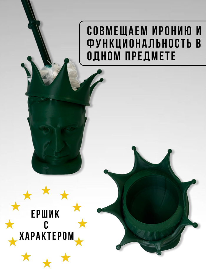 И вот однажды на такой встрече наш мастер говорит: - А давайте сделаем подставку для ершика в виде головы Zеленского.