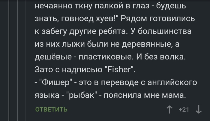- Фишер, это в переводе рыбак, — сказала мне мама.