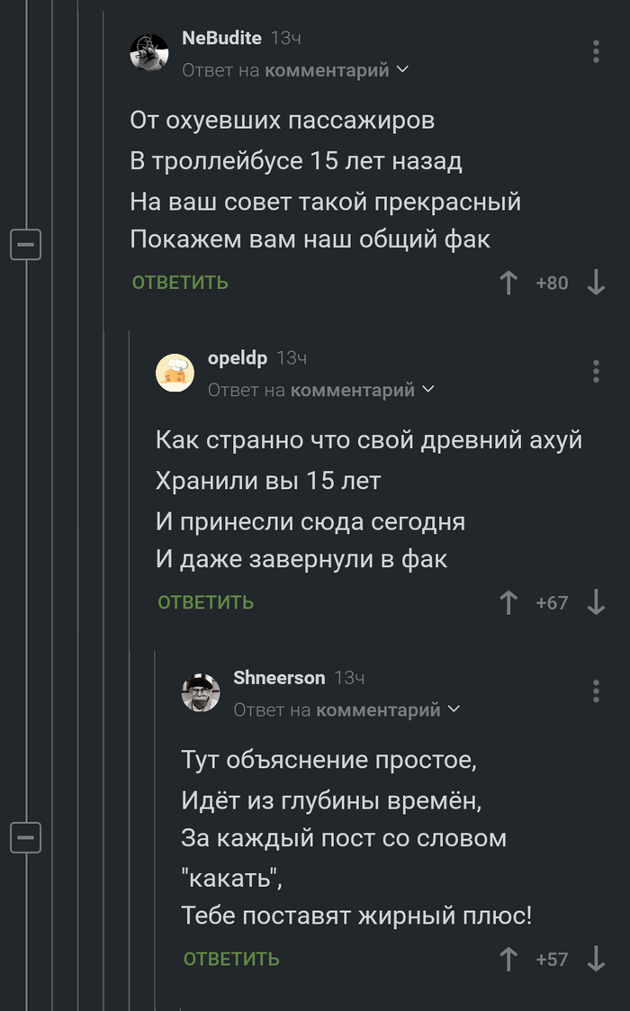 1369 WolfKuda Скриншоты комментов Стихи народные 1 год назад @ivankosoft, @KykypyZo.com, @LimeJoe, @dontaskwhy433, вы в телевизоре #comment_322173901 Показать полностью 1 Комментарии на Пикабу Скриншот Стихи Народное творчество Мат 70 17 14 Ещё 0
