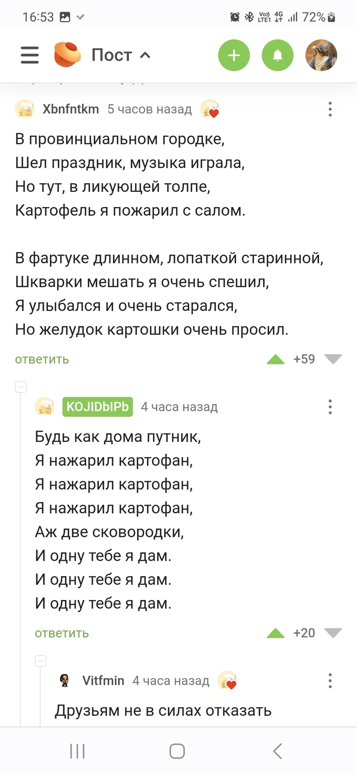 17 Fey.hoa Скриншоты комментов КиШ и жареная картошка 2 года назад Первый комментарий #comment_259389916 И очень полезный пост https://pikabu.ru/story/otvet_na_post_kartofelnoe_proklyatie_9774427 Показать полностью 2 Скриншот Ответ на пост Комментарии на Пикабу Король и Шут Творчество Народное творчество Жареная картошка Длиннопост Ещё 0