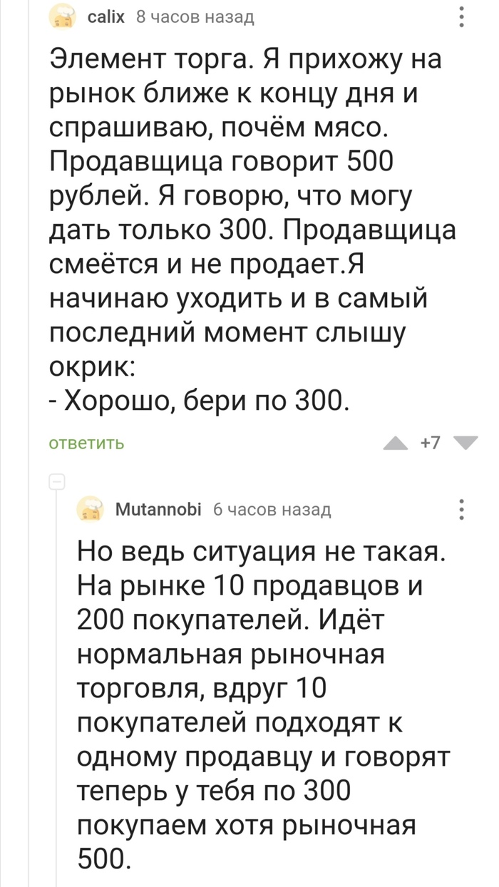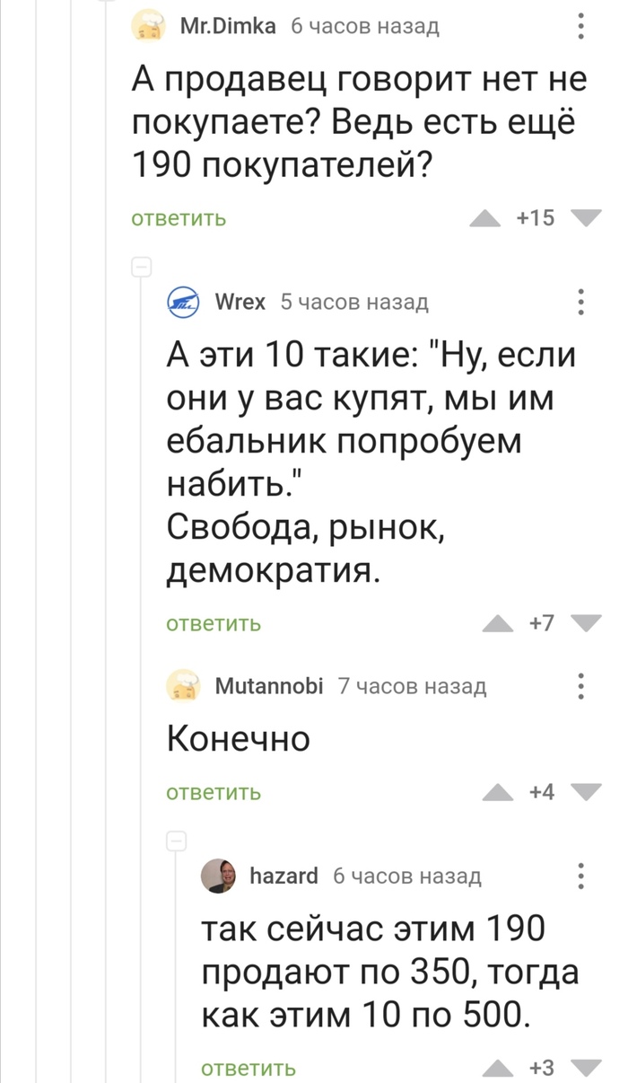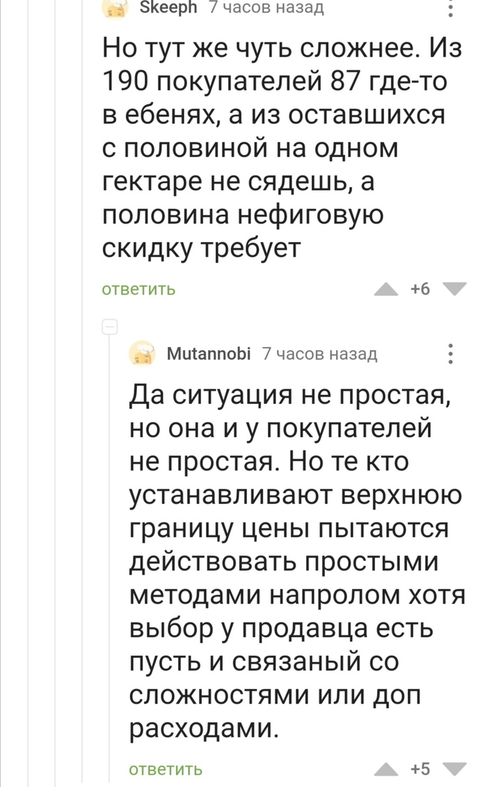 Если Яндекс.Нейро не соврал, в СССР в 1970-е годы официально чёрная икра стоила около 4 рублей за килограмм, но реально её можно было купить только по 40 рублей за килограмм. Но и цена 40 р./кг была значительно меньше мировой. Я поднял вопрос о том, что этот деликатес надо было продавать ВСЕМ по мировой цене, чтобы дотировать продукты первой необходимости (например, хлеб и молоко). Вот ответные реплики: