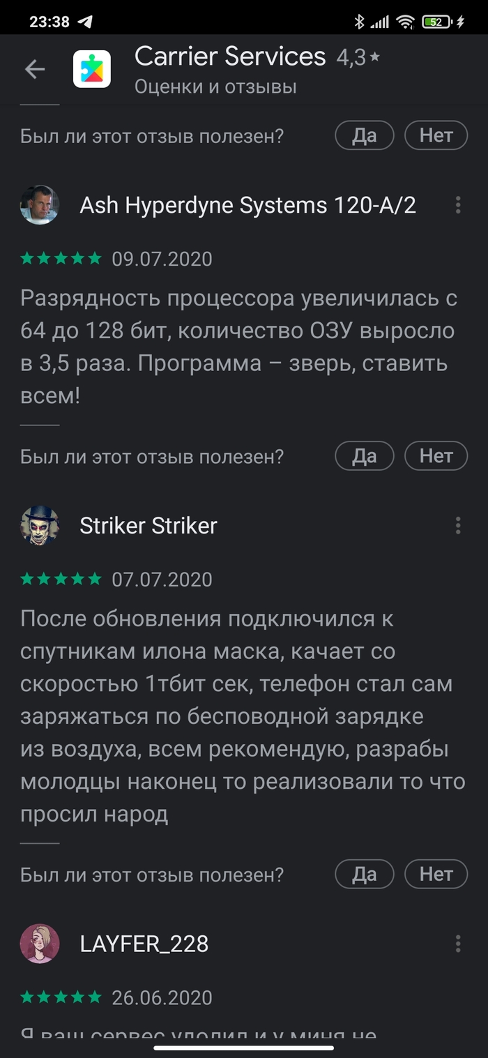 Но, вот как-то заглянул в список установленных приложений и обнаружил непонятное приложение Carier Service. В куцем и невнятном описании Google Play: