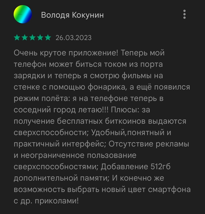 Короче, ничего не понял и начал гуглить, но и в сторонних описаниях ничего вразумительного не нашлось и я вернулся на страницу приложения и решил почитать отзывы. И тут прям снизошло озарение - народ затроллил разрабов так, что ни на один отзыв не ответил. Тупо заныкались под листочком))