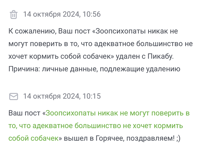 Зоопсихопаты обиделись и пожаловались на мой пост2