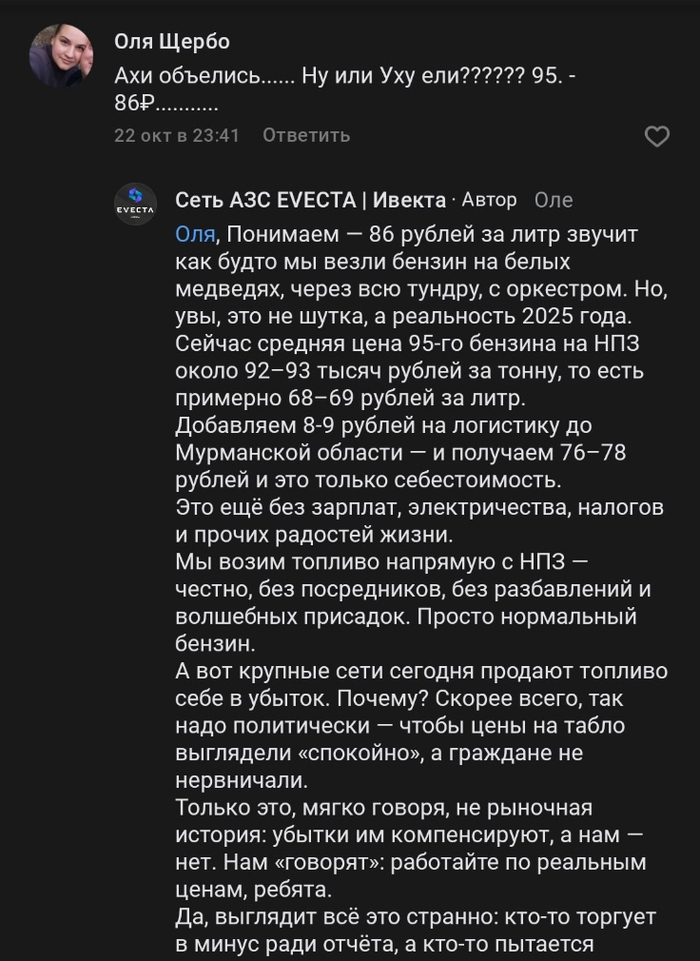 7964 49.5mm 4 дня назад Скриншоты комментов Клиентоориентированность АЗС в Мурманской области)1 Показать полностью 3 Комментарии ВКонтакте АЗС Цена на бензин Бензин Длиннопост 821 99 30 29 18 11 6 5 4 4 2 2 2 Ещё 8