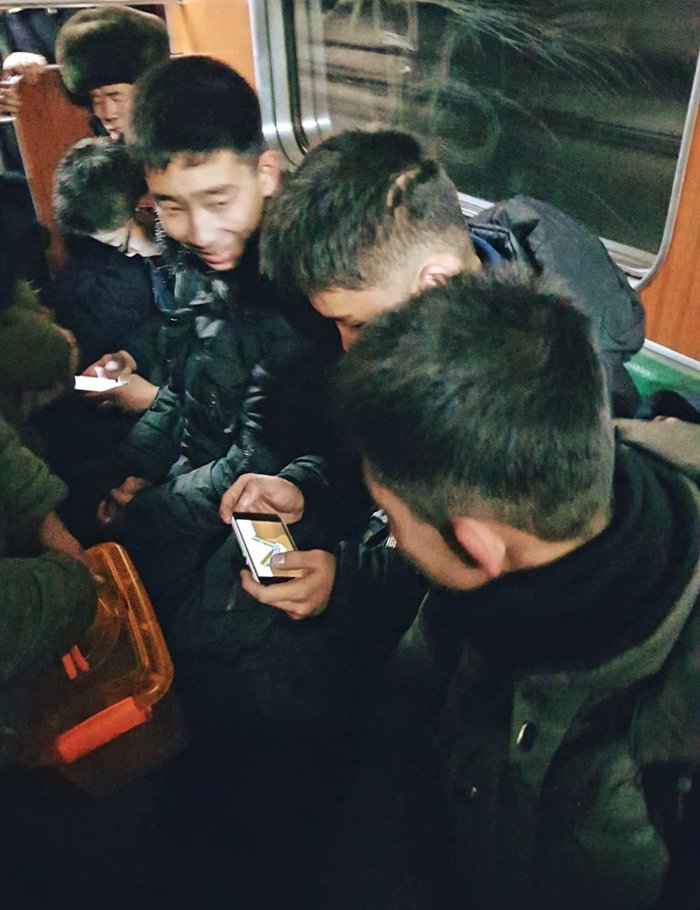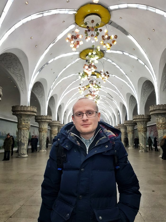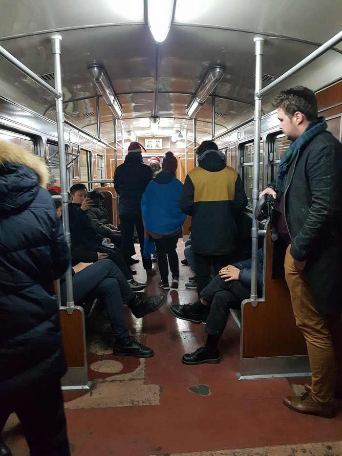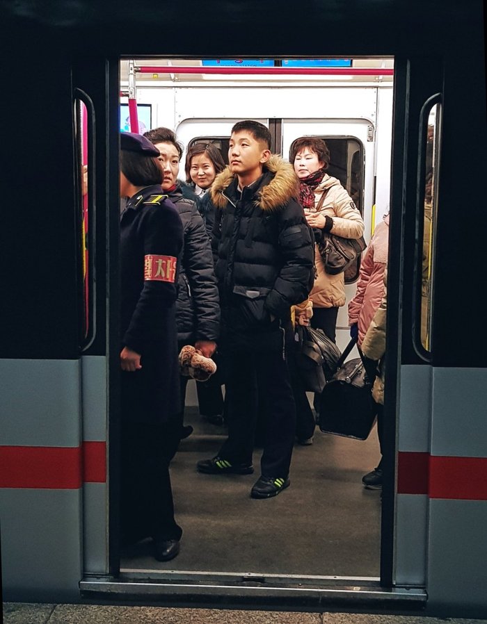 В пхеньянском метро меня впервые за всю поездку в Корею сфотографировали какие то подростки на свой смартфон. Старались делать это незаметно, но спалились, ибо они сидели, а я стояла, и видела отражение их экрана на стекле позади них. Надеюсь с хорошей целью, а никак американского врага. Еще говорят, что пхеньянское метро похоже на московское. Я тот человек, который никогда не спускался в московское метро, но я хорошо помню метро в Ташкенте. Так вот, пхеньянское метро, а особенно поезда и все что внутри них, похоже на Ташкентское метро. Да и станции похожи на Ташкентские.