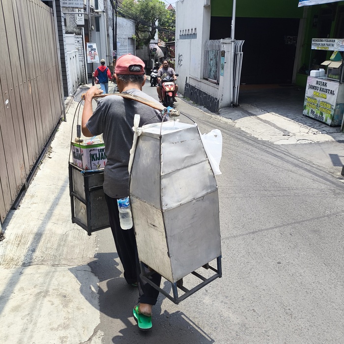 По улочкам курсируют продавцы самой разной еды, кто-то из них стучит бамбуковой тростью по посуде, чтобы известить всех окружающих "Еда здесь!".