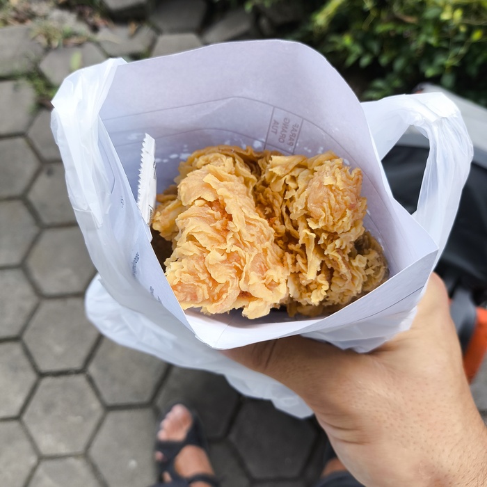 Всюду высматриваю какие-нибудь супы, но кругом лишь курица. Много курицы. Чаще всего она выглядит так же, как в KFC, только стоит куда дешевле. 7000 рупий за крупный кусочек (42 рубля). Взял два таких, мне хватит на прогулку.