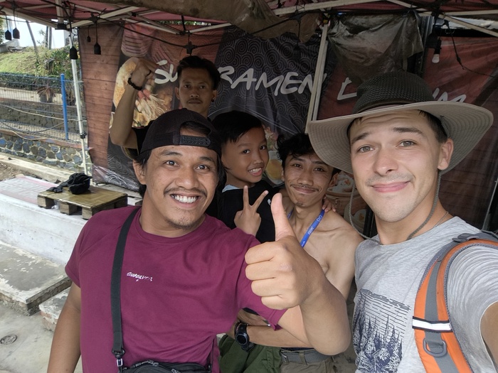 Только думал перекусить, присев на обочину, как меня позвали к себе местные. Очень уж хотели сделать фото с инопланетянином. Именно им я себя ощущаю в Китае и Индонезии.