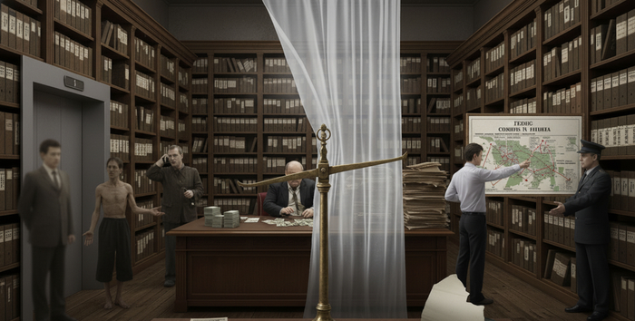 Это история о том, как в стране, называвшей себя самой справедливой в мире, справедливость продавалась оптом и в розницу — центнерами пшеницы, тоннами ржи, вагонами ячменя. И о том, как молчание превратилось в соучастие, а соучастие — в крах системы.