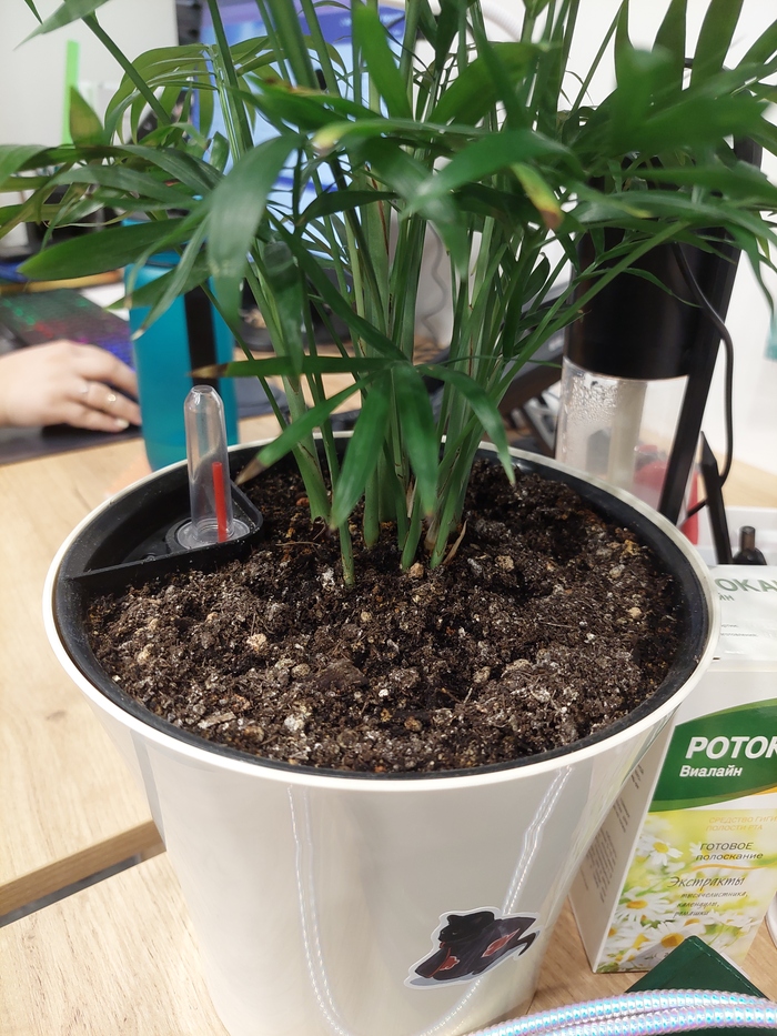 Влажность: Пальмы любят повышенную влажность. Регулярно опрыскивайте листья или используйте увлажнитель воздуха.