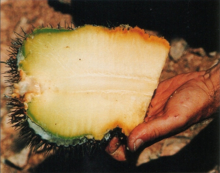 2 фото) На срезе взрослого экземпляра хорошо видно, что только верхняя часть стеблей копиапоа зеленая и может фотосинтезировать. Нижняя ткань используется для хранения воды.